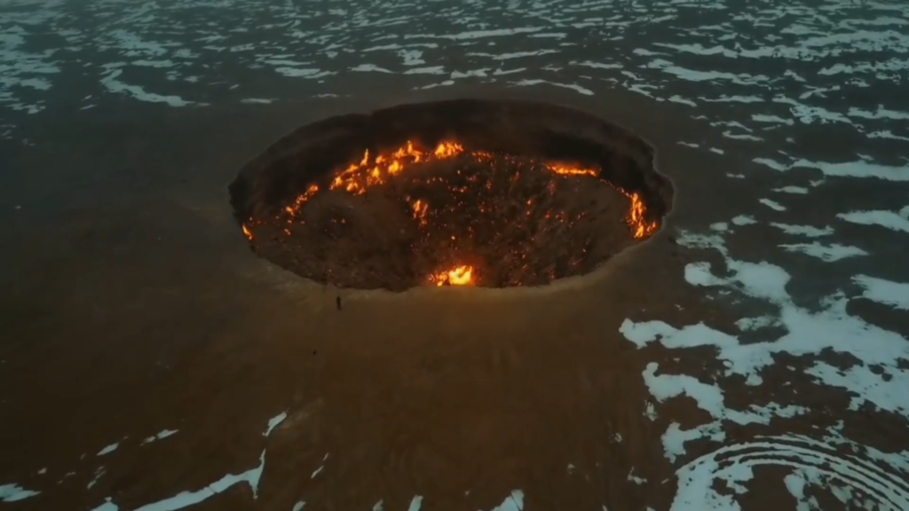 तुर्कमेनिस्तान के काराकुम रेगिस्तान में एक जगह है जिसे “नरक का द्वार” कहा जाता है। यह एक बड़ा जलता हुआ गड्ढा है जो 1971 में एक ड्रिलिंग दुर्घटना के कारण बना था और तब से आज तक जल रहा है।